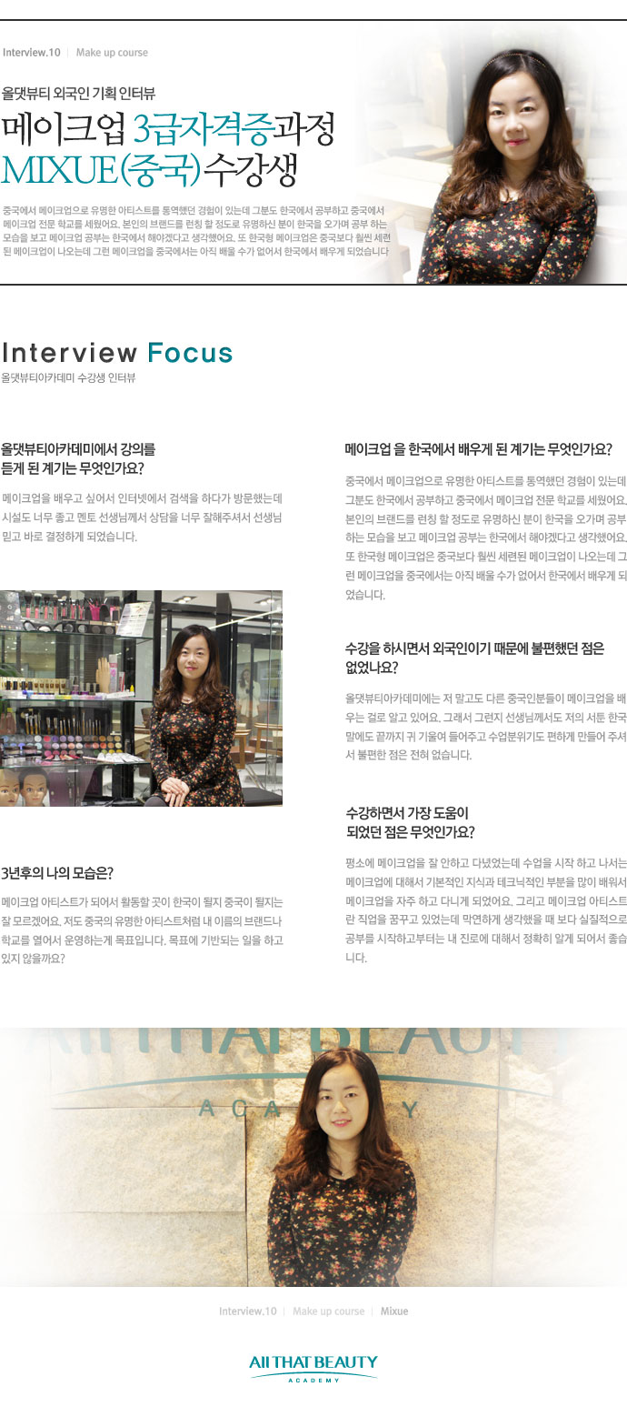 외국인 기획인터뷰 - 메이크업학과 3급자격증과정 미설 수강생2013.12.16 423589 |
